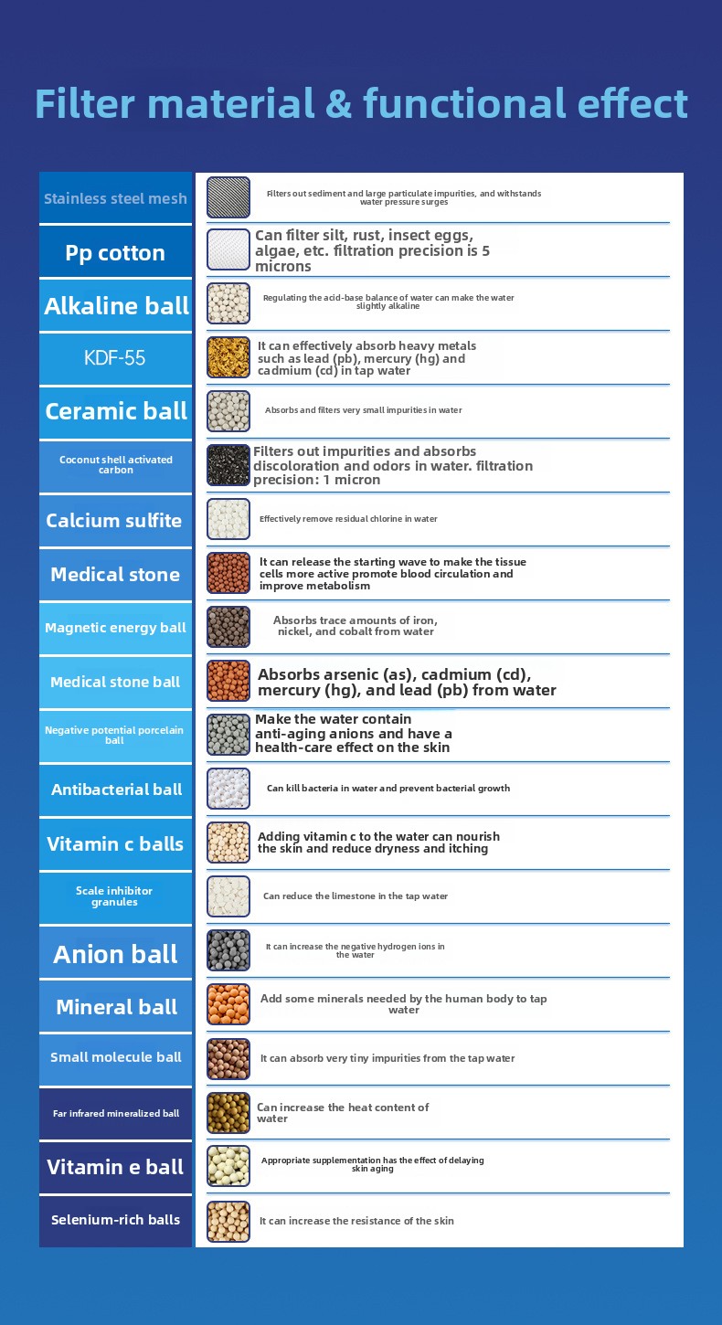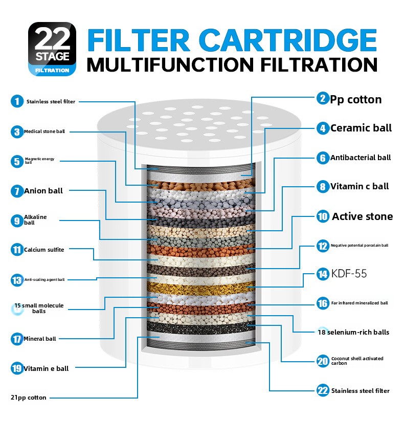 Multi-stage Filtration: 15/20/22 level filtration for effective removal of chlorine, heavy metals, rust, sediment, and organic matter.